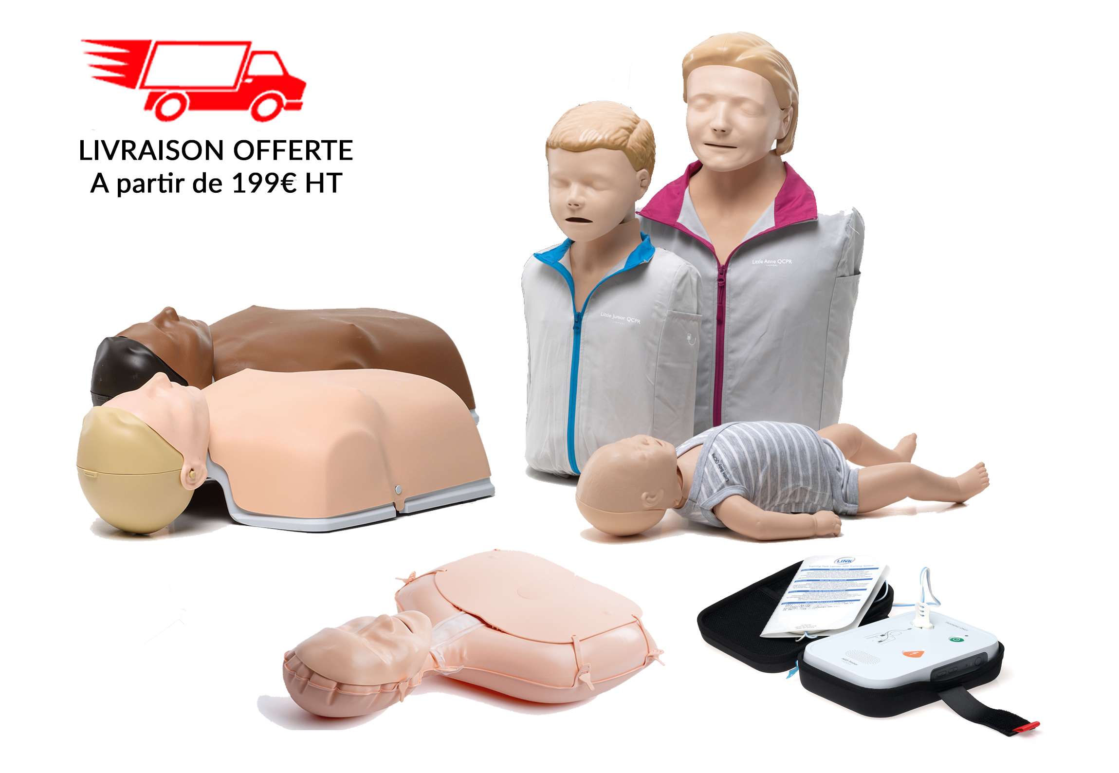Ce code promotionnel vous offrira une remise sur l'ensemble de notre gamme de mannequins de secourisme, cumulable avec l'exonération des frais de ports sur notre Site Ecommerce.