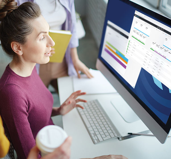 Crie, colabore e compartilhe cenários e relatórios com colegas e administradores.