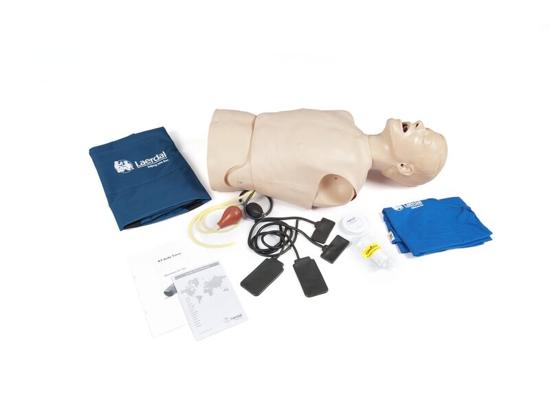 Inclui tronco adulto, kit de substituição de bexigas, lubrificante de manequim, camiseta sem mangas e bolsa de transporte.