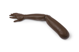 Right plain arm in brown skin tone with injectable deltoid pad and plain forearm pad to fit adult male manikins.