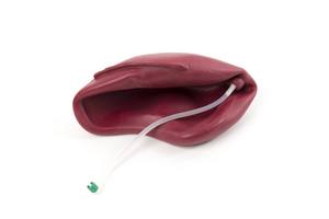 The SimMom Boggy Uterus Bag is a spare part for the SimMom PPH module kit. It consists of an inflatable silicone bag that is placed on top of the silicone PPH uterus to simulate a palpable and massagable boggy uterus.