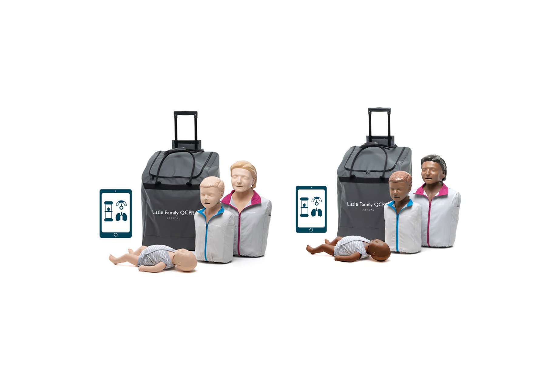 Little Family QCPR Light besteht aus drei CPR-Übungspuppen in einer praktischen Transporttasche mit Rollen. Das Set umfasst eine Erwachsenenpuppe (Little Anne QCPR), eine Kinderpuppe (Little Junior QCPR) und eine Säuglingspuppe (Little Baby QCPR). Jede Übungspuppe verfügt über Bluetooth und ist somit mit der QCPR-App kompatibel. Außerdem ist eine Schnittstelle für den Anschluss eines SkillGuide-Geräts vorhanden.
