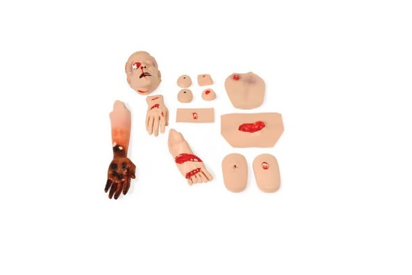 Trauma Modules set may be added to adult manikins for realism in trauma life support and lifesaving first aid scenarios.