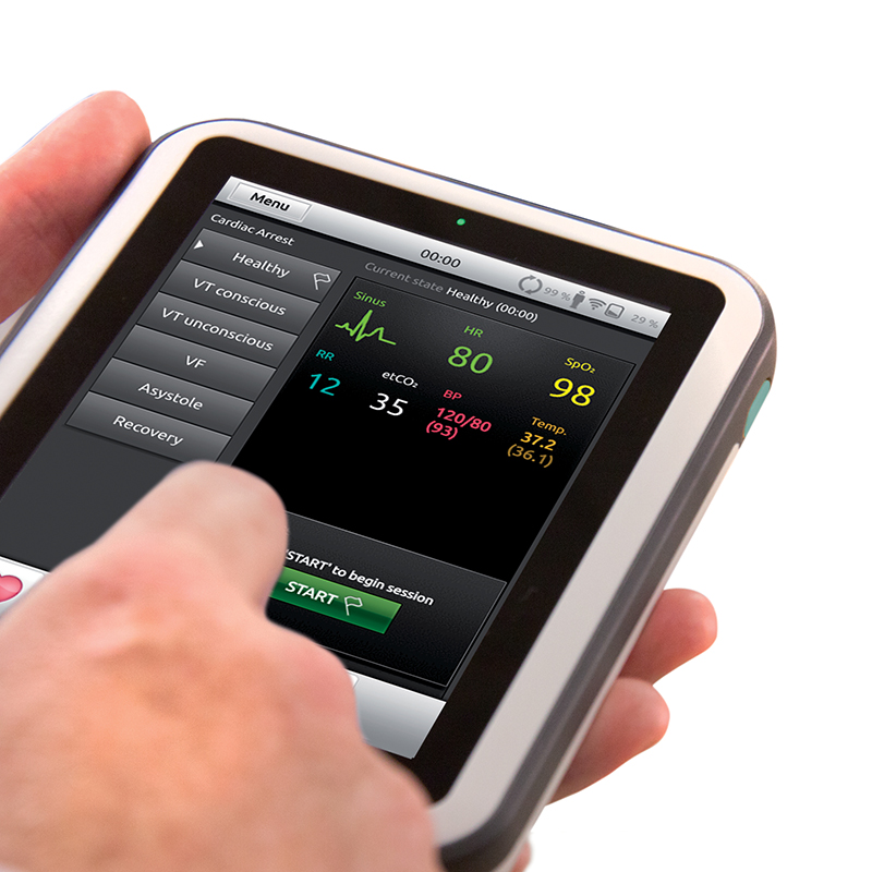 SimStart is a portable and affordable training solution to simulate the use of an AED or a defibrillator monitor. Integrate SimStart with any Laerdal manikin or patient simulator to achieve a more comprehensive and realistic simulation training.
