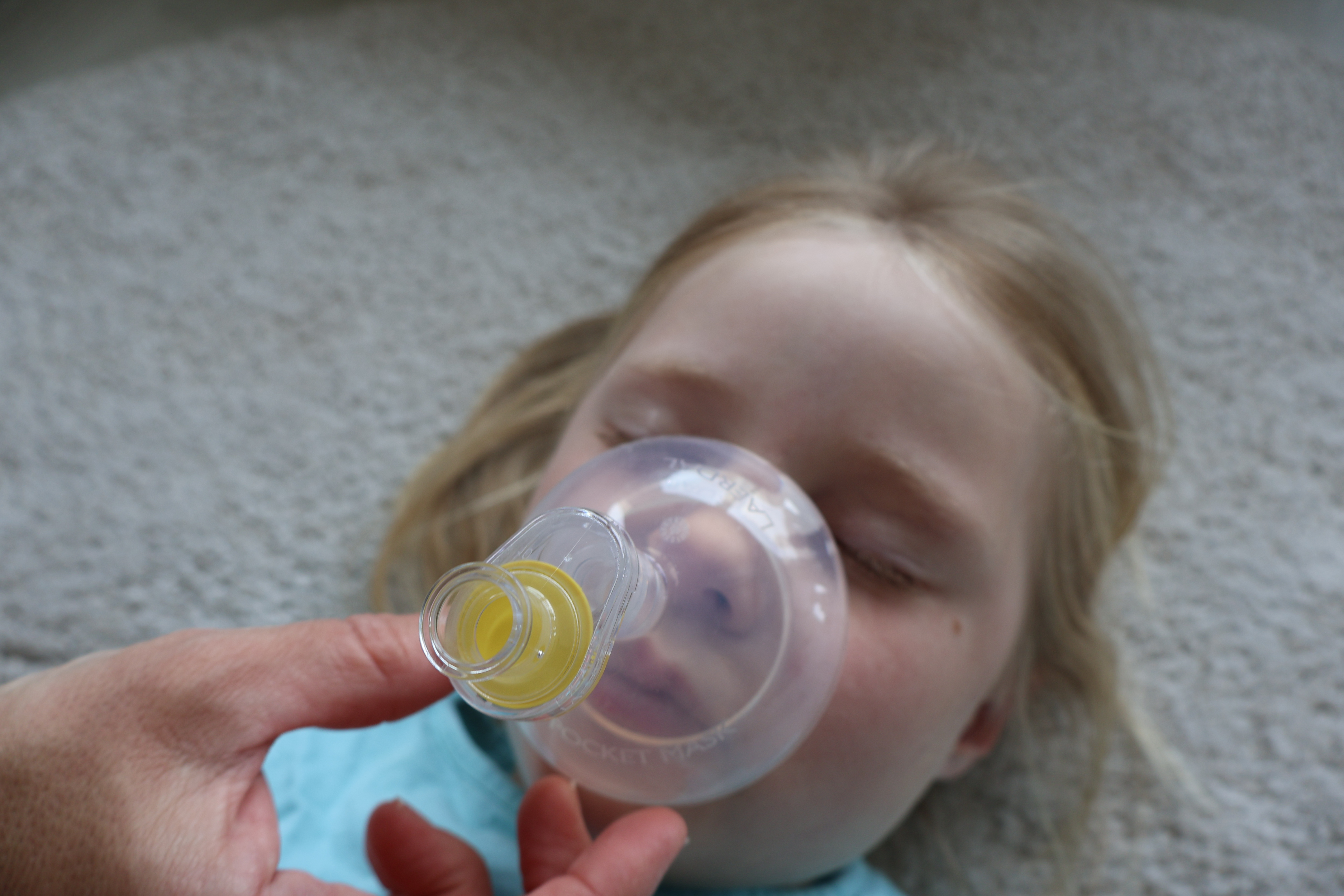 The circular silicone mask is designed to provide a tighter seal on paediatric faces.