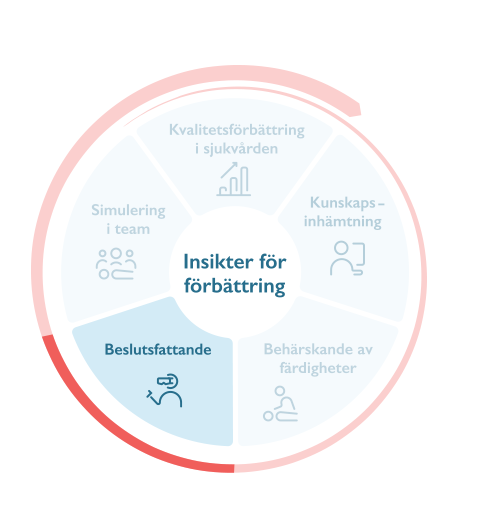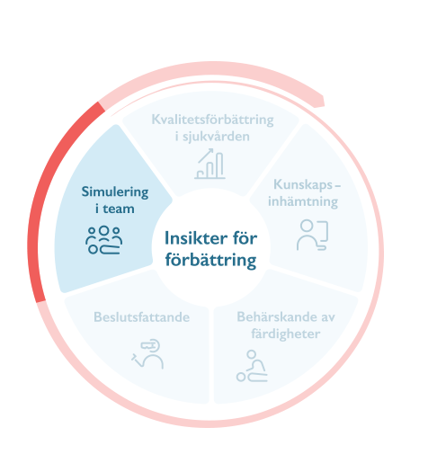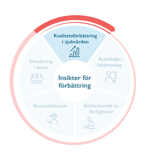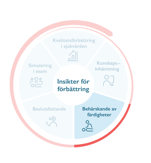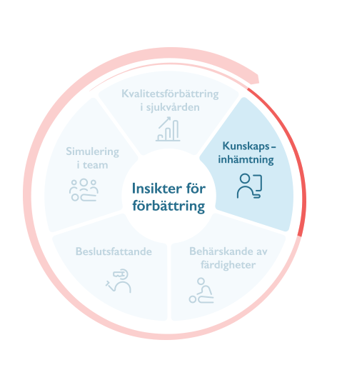 Inlärningscirkeln är ett verktyg utformat för att hjälpa oss bygga strategier för att optimera utbildningseffektivitet och inverkan med hälso- och sjukvård som sammanhang. Den består av fem segment med en integrationspunkt i mitten. Det bör noteras att medan den visuellt kan se ut som en cirkel, fungerar den i praktiken som en ständigt utvecklande spiral mot livslångt lärande och klinisk förbättring.