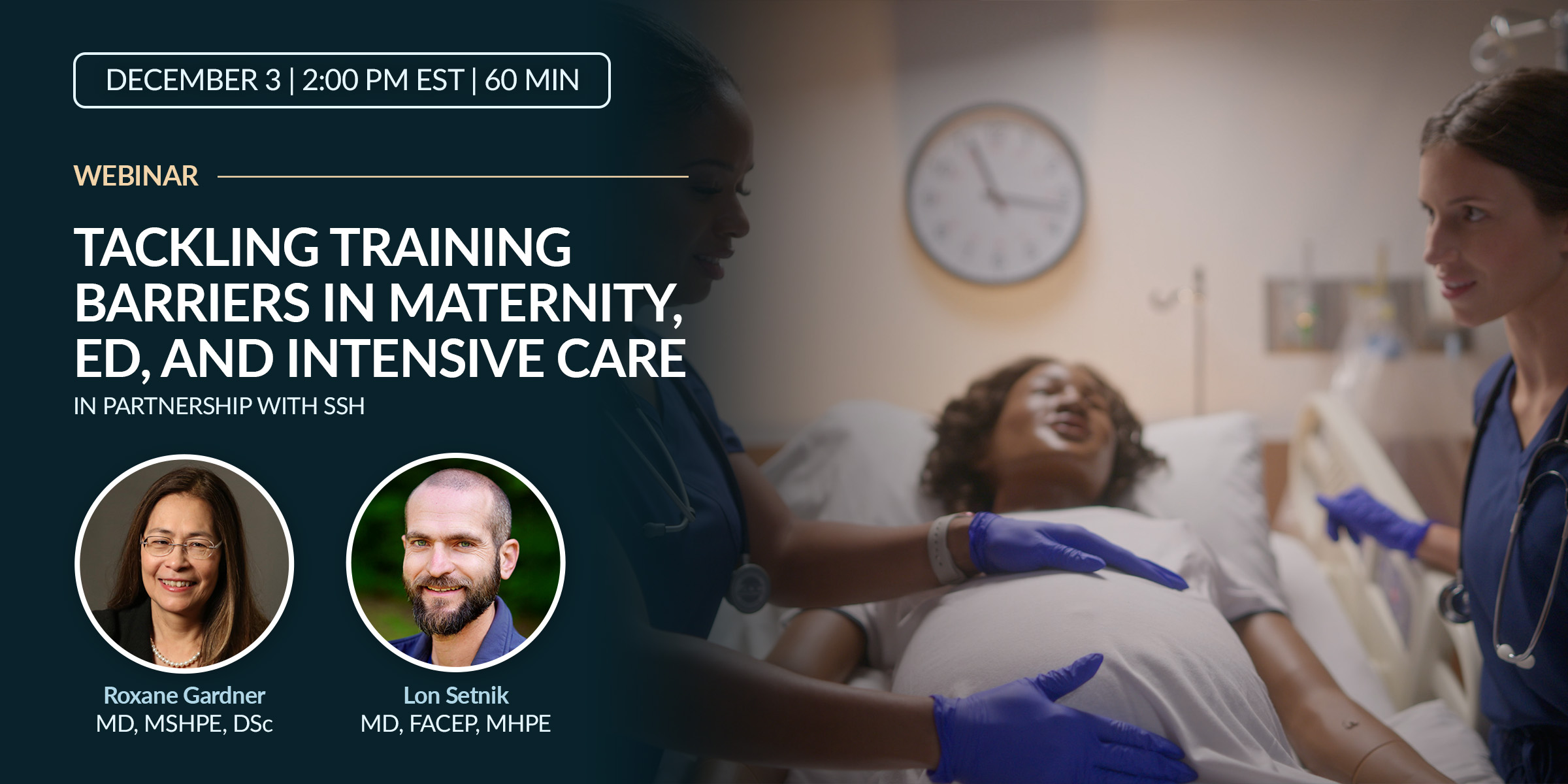 In partnership with the Society for Simulation in Healthcare (SSH) and their Virtual Learning Labs series, we invite you to join us for “Tackling Training Barriers in Maternity, ED, and Intensive Care,” on Wednesday, December 3 at 2:00 PM ET.