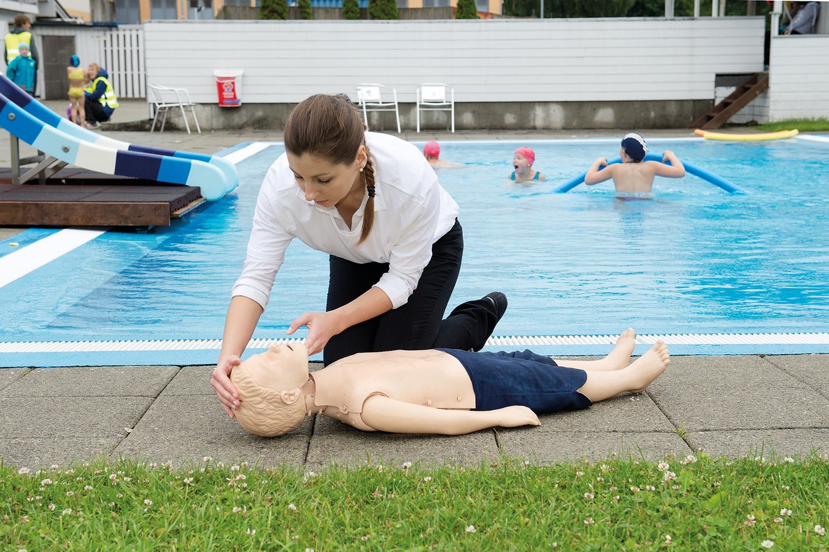 - O kit opcional de resgate em água proporciona aos alunos uma experiência realista das técnicas de resgate em água necessárias para a faixa etária representada pelo manequim