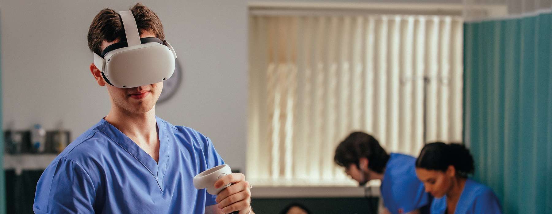 在他们获得这些心理运动技能的刻意练习后,我们将他们推进到Zone 2,这更多是情境化学习,但仍然可以在过程中暂停和提问。这就是vrClinicals发挥作用的地方。