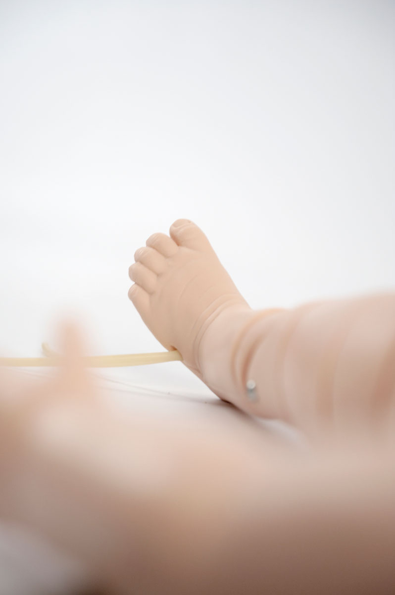 这是一个全身的婴儿护理模型,具有听诊功能,能满足护理训练的要求。培训可包括声音听诊,静脉注射和骨髓穿刺,囟门评估,导尿和一般的婴儿病人护理。