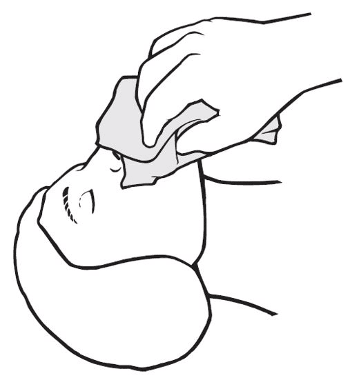 3. ワイプをマネキンの口と鼻部分にぴったりと覆いかぶせます