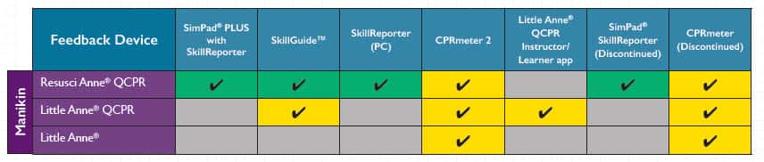 Laerdal의 심폐소생술 교육 제품 포트폴리오에는 AHA 요구사항을 충족시키고 학습자를 위해 고품질 심폐소생술 교육을 제공하는데 도움이 되는 피드백 솔루션이 포함되어 있습니다. 하기 제품은 어떤제품이 어떤 표준을 충족하는지 식별할 수 있도록 위의 심볼을만들었습니다.