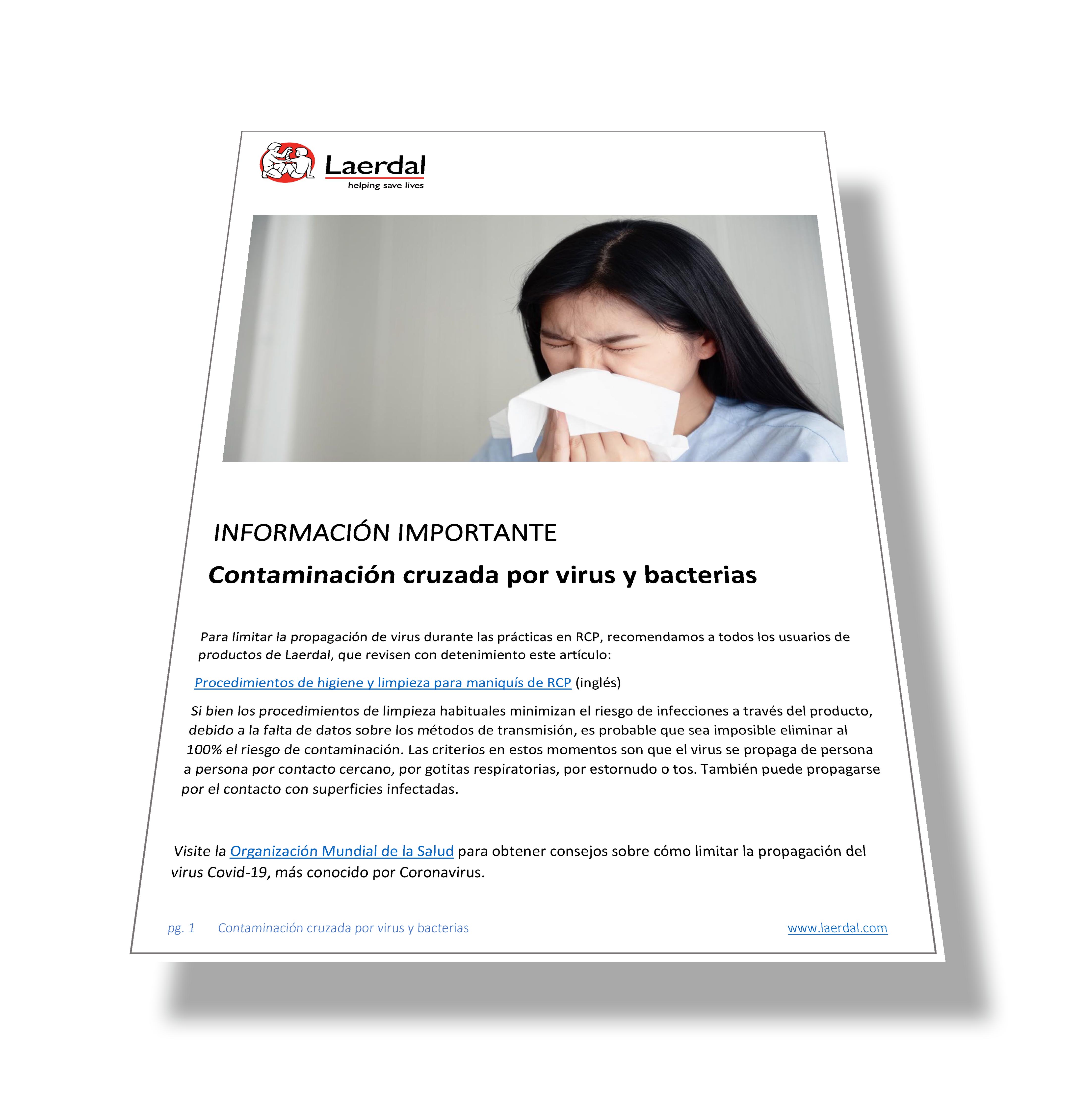 Para limitar la propagación de virus durante las prácticas en RCP, recomendamos a todos los usuarios de productos de Laerdal, que revisen con detenimiento este artículo: Procedimientos de higiene y limpieza para maniquís de RCP (en Inglés).