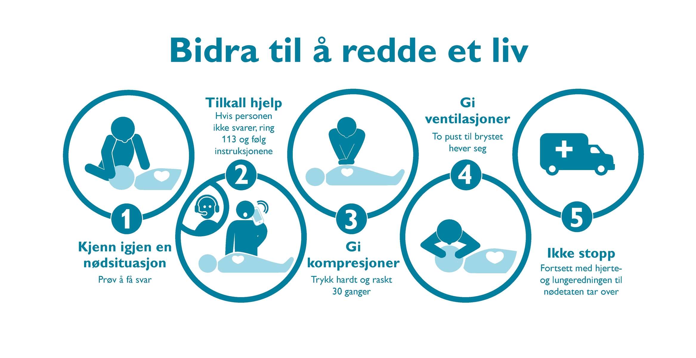 Ved hjertestans er det helt avgjørende å få hjerte i gang igjen så fort som mulig. For å få dette til, er det viktig at folk i lokalsamfunnet tar ansvar. Ring 1-1-3 umiddelbart hvis noen mister bevisstheten og slutter å puste eller puster unormalt. Start raskt med hjertekompresjoner frem til ambulansen kommer.