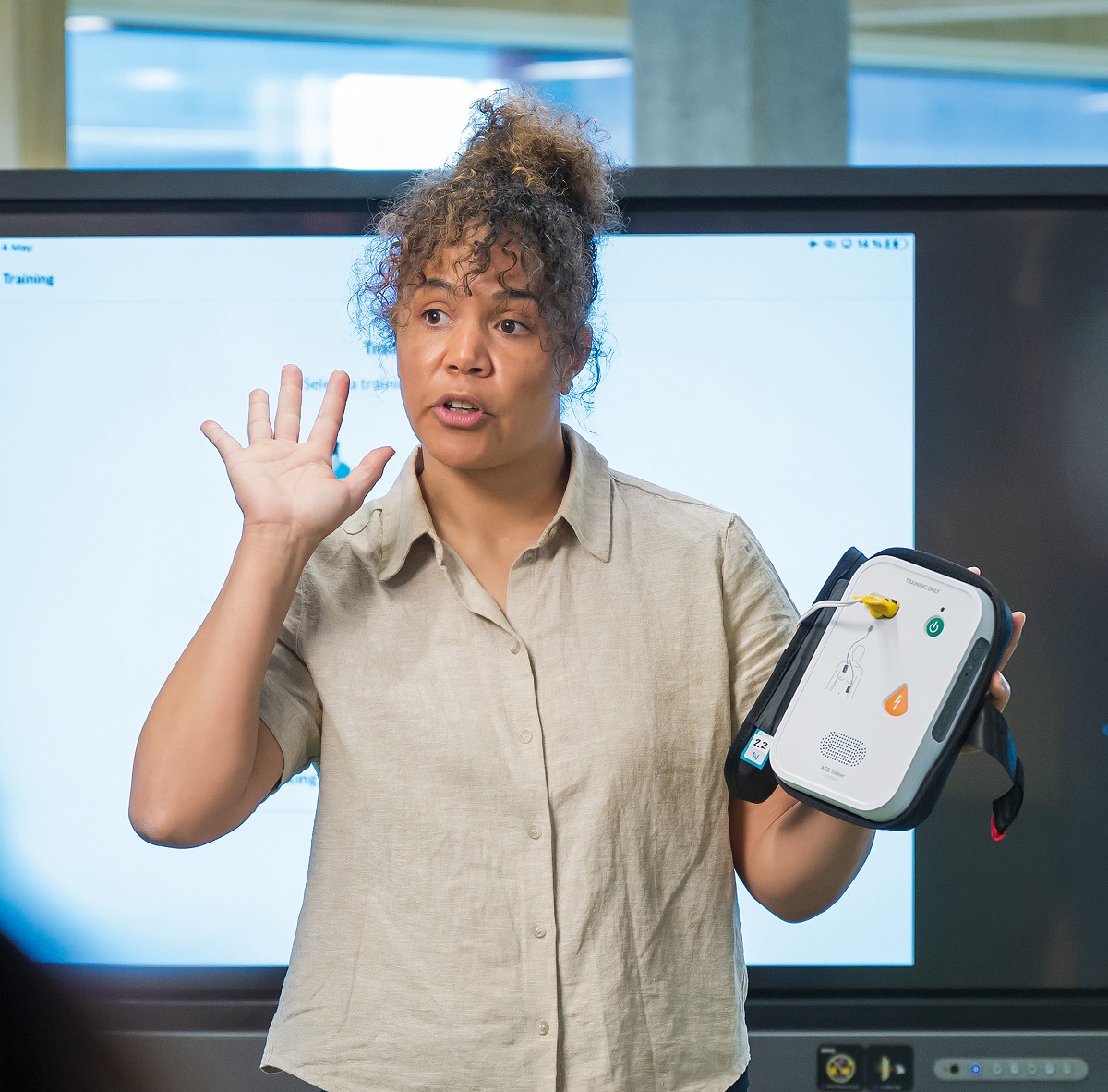 Defibrylator szkoleniowy AED Trainer odzwierciedla najpopularniejsze funkcje wszystkich defibrylatorów AED dostępnych na rynku, dzięki czemu uczestnicy szkolenia mogą zdobyć kompetencje i pewność siebie umożliwiające skorzystanie z defibrylatora w rzeczywistych sytuacjach. Dodatkowo defibrylator szkoleniowy pozwala dopasować język obsługi do potrzeb użytkownika.